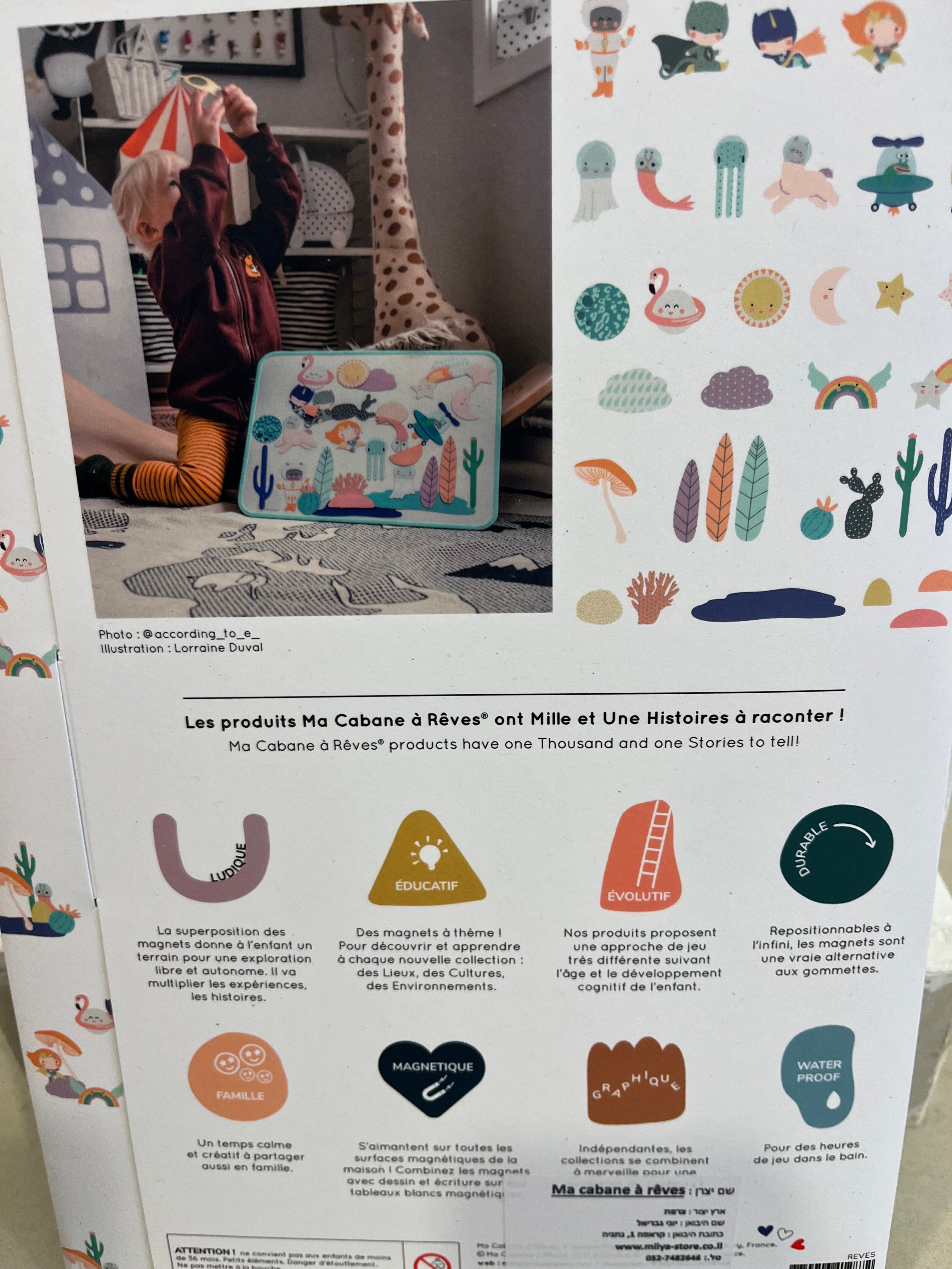 بفضل الشهية والمرونة ، يتم وضع المغناطيس في الأعلى ، وتتداخل وبالتالي السماح للطفل بالتحقيق