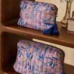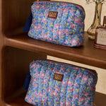 طباعة الأزهار ، تنجيد داخلي مقاوم للماء ، فتحة سحاب ذهبي ، بوم بوم ملونة مصنوعة يدويا ، بطانة مطبوعة ، جيب داخلي