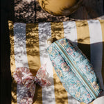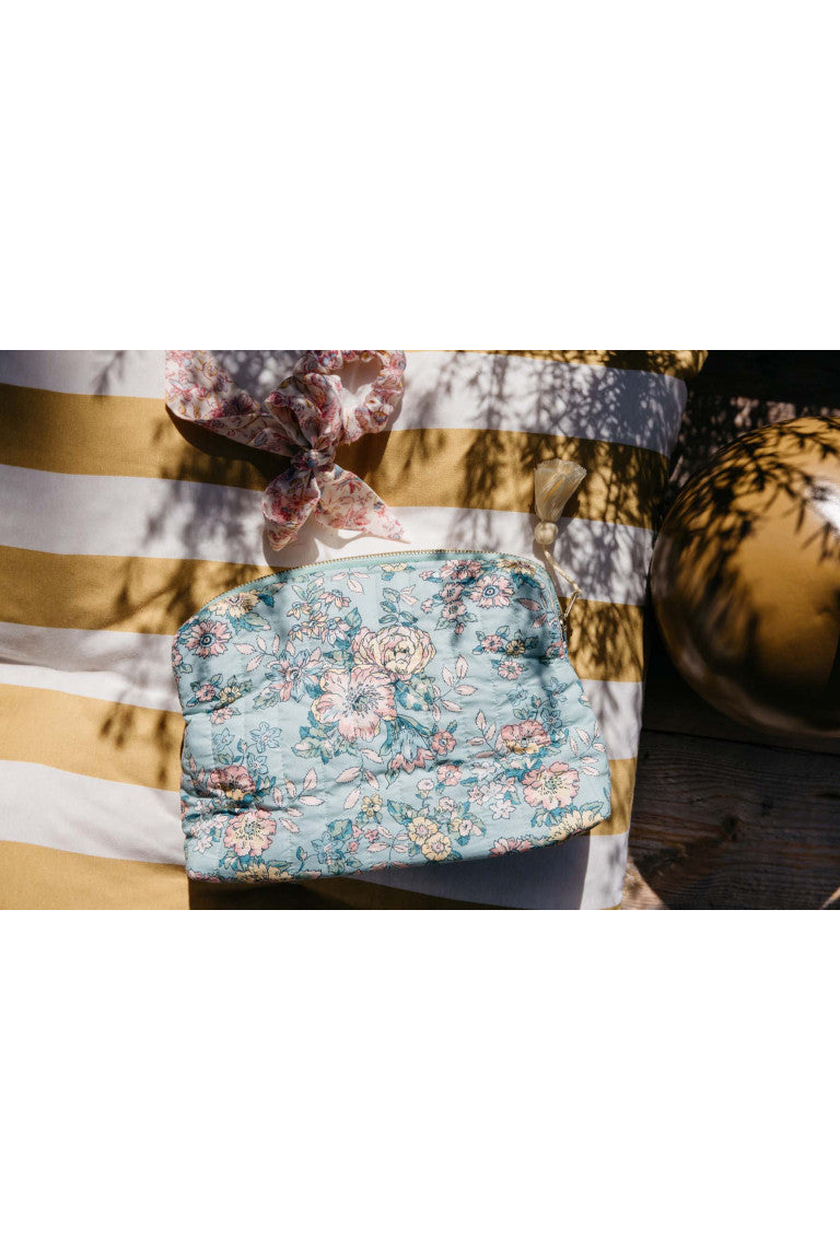 طباعة الأزهار ، تنجيد داخلي مقاوم للماء ، فتحة سحاب ذهبي ، بوم بوم ملونة مصنوعة يدويا ، بطانة مطبوعة ، جيب داخلي