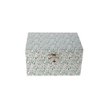 سيحتوي هذا الصندوق الرائع على كل كنوزك! سوف تسقط في حب طباعة الأوراق الخضراء الجميلة. ما عليك سوى تدوير القرص الموجود في الجزء الخلفي من الصندوق وعند فتحه ، يكشف هذا الصندوق عن راقصة نجمة وردية جميلة سترقص. سوف تدور على لحن جميل. في الداخل ، تجعله خامته المخملية الناعمة حقيبة فاخرة وكبيرة لحمل قلادة وخاتم وسوار.