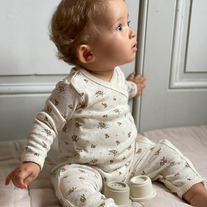 بذلة طويلة لحديثي الولادة للأطفال - PLUIE DE FLEUR YELLOW