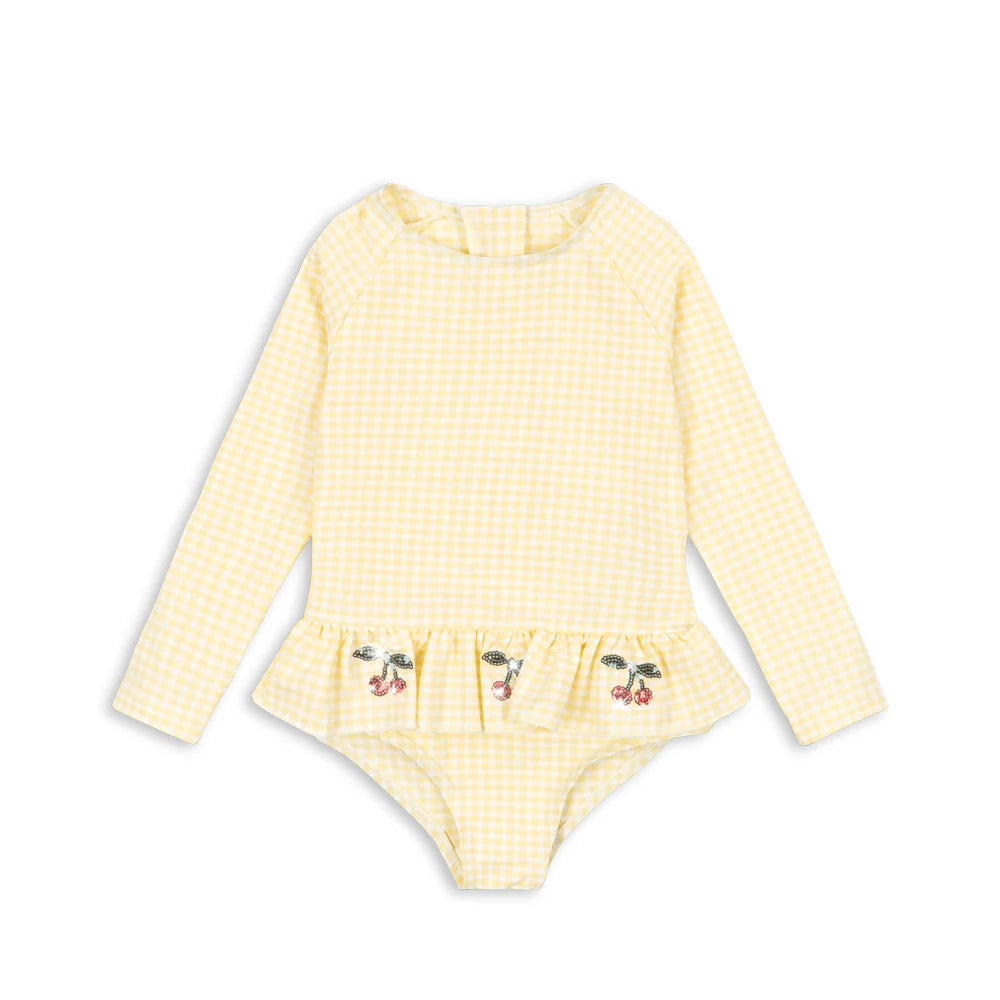 בגד ים שלם שרוולים ארוכים -BANANA ALMOND CHECK