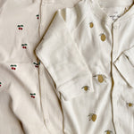 Buttons at the shoulder and crotch/legs for easy and comfortable dressing