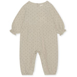 Closes with 4 pearl buttons at the back neck and snap buttons at the legs and hem for comfortable and easy dressing.