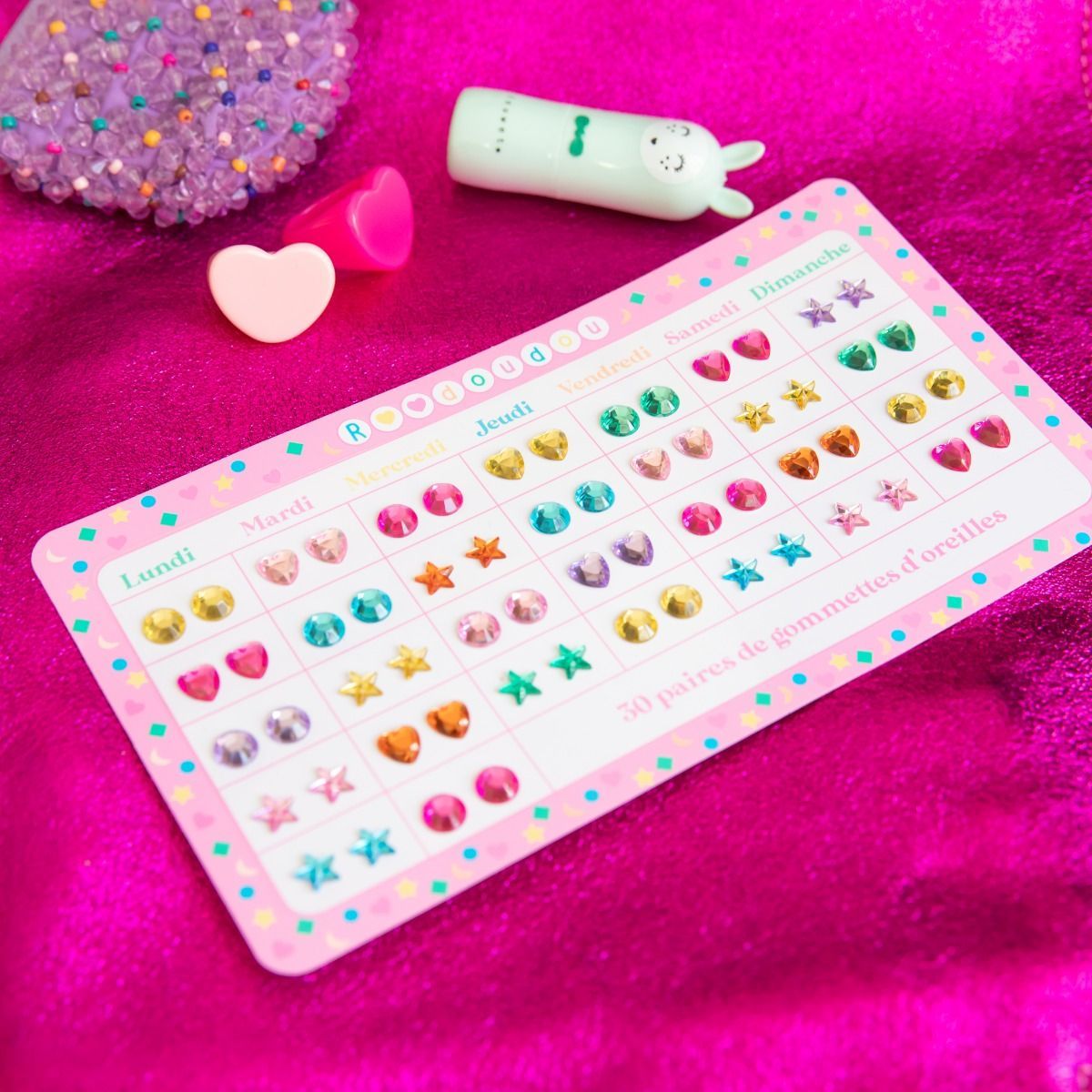 Thanks to its storage plate, the ear stickers are organized in the form of a weekly planner, you can choose the model to wear for each day of the week. A fun fashion accessory for learning the days of the week, identifying colors, but also guessing shapes: stars, hearts or circles. How to combine business with pleasure by exercising and learning. A two-in-one jewel to have on your dressing table!