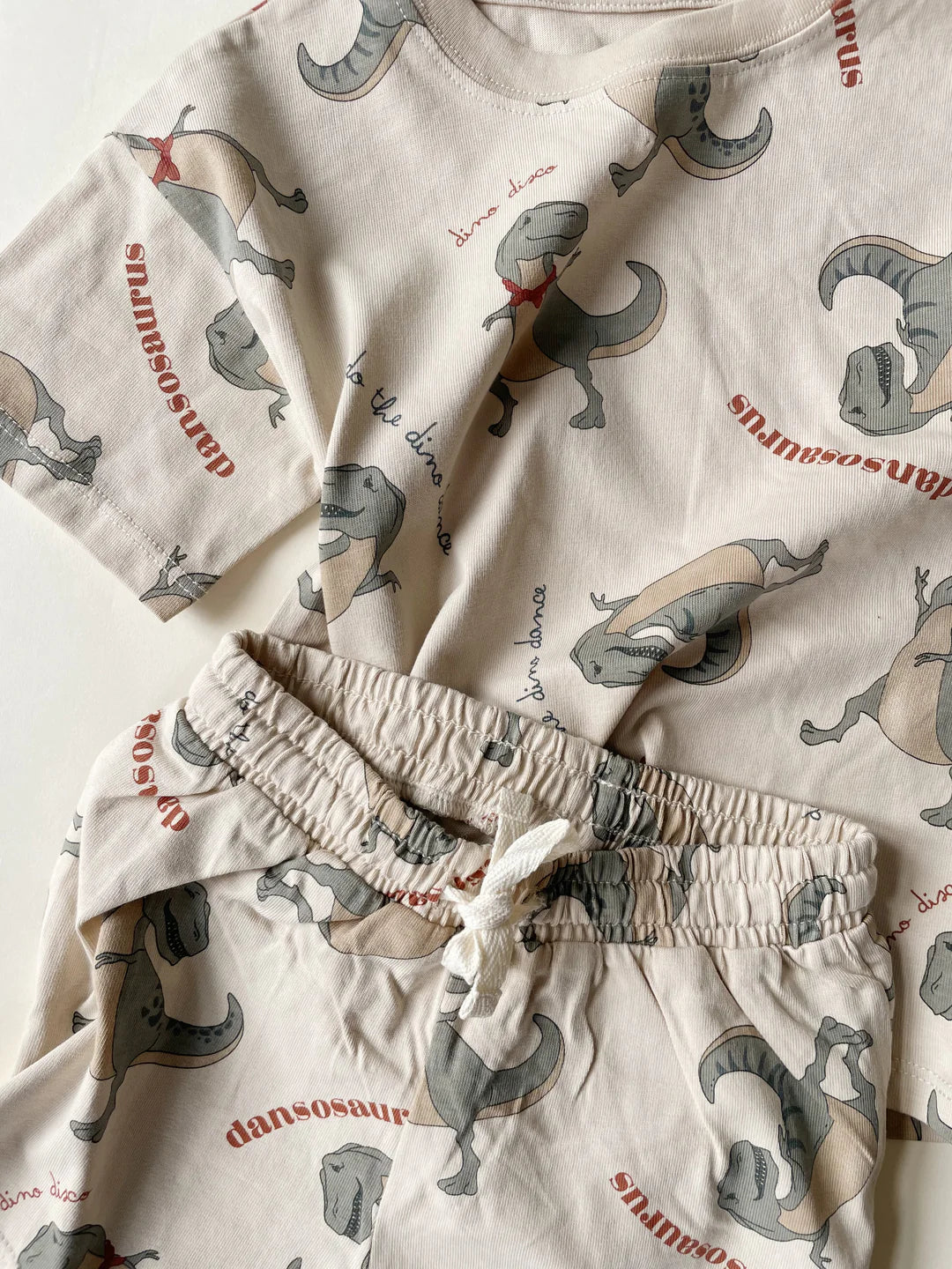 2-piece set made in 100 percent organic GOTS certified cotton. The set consists of a t-shirt and shorts with a soft elasticated waist and an elastic drawstring waistband.Shirt and shorts set - DANSOSAURUS
