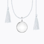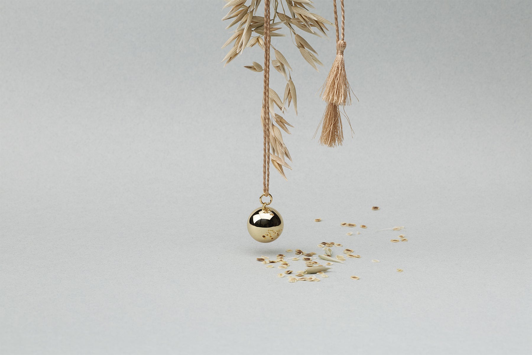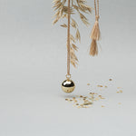 - Brass pendant covered in 18k gold or silver, hanging wire and silk pompoms