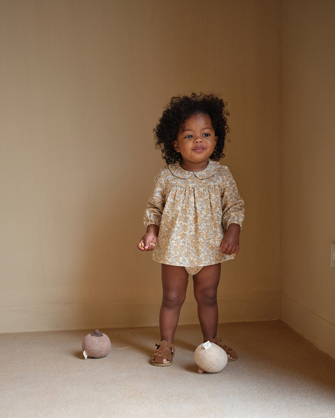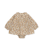 Conçu avec un col élastique et des détails à volants sur les manches et les jambes