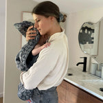 שילוב עדין של כחול חצות וירוק מרווה, מוסיף נופך אלגנטי ופואטי, מה שהופך את גלימת האמבטיה הזו למתנה מעשית ומעודנת לתינוק.