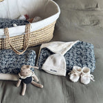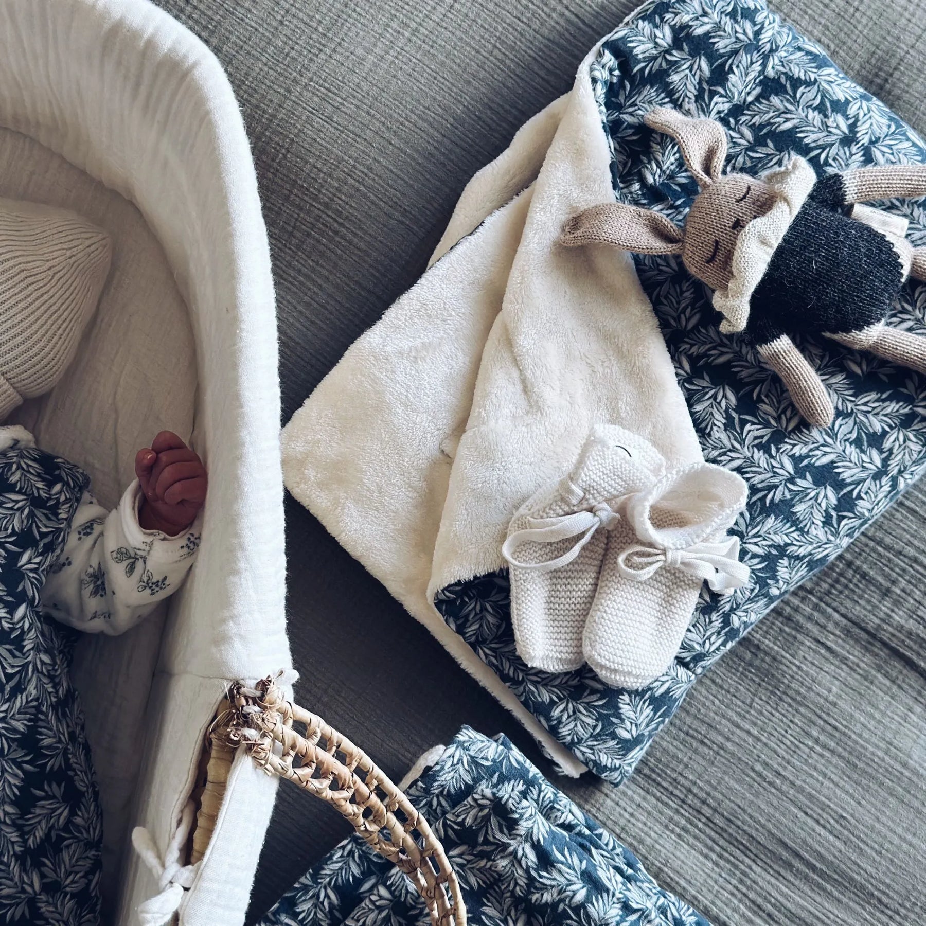 משלבת צד גזה כותנה מודפס עם צד קטיפה רך במיוחד, כדי לעטוף את התינוק בנוחות. אידיאלית לטיולים, חיבוקים או התכרבלות בעגלה או במושב הבטיחות, היא עדינה לעור עדין. הדפס הבנגלי שלה, פרשנות מחודשת אלגנטית לדוגמת הנמר, מוסיף נופך נועז ומודרני, מה שהופך אותה למתנה לתינוק אופנתית ומקורית
