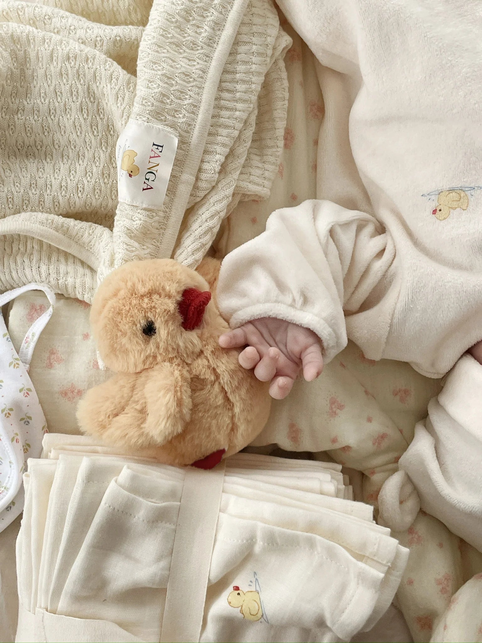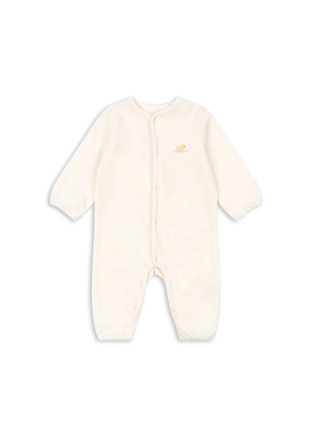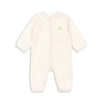 אוברול חם לתינוק, עשוי מתערובת כותנה רכה ונוחה. סגירות הצמדה מלפנים ולאורך הרגל הופכות את החלפת החלפת הבגדים לקלה ושומרות על נוחותו לאורך כל היום.