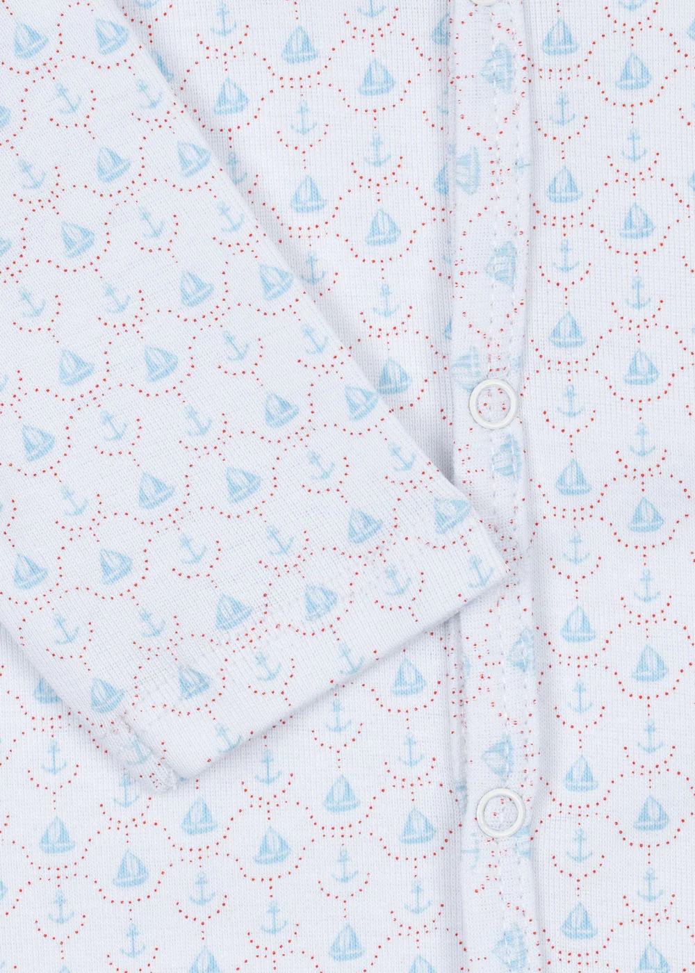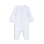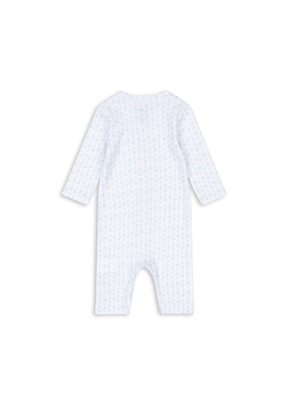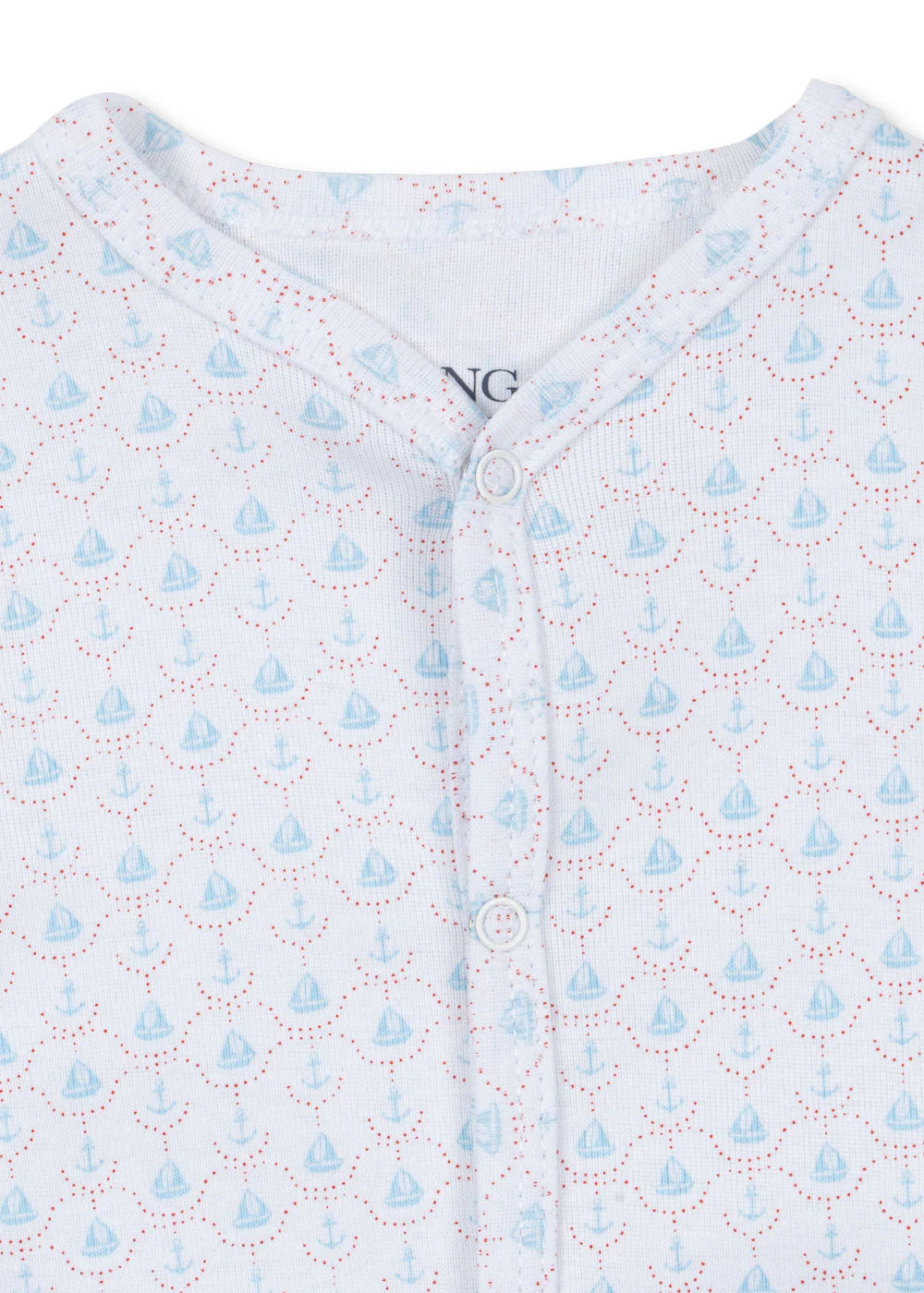 אוברול רך לתינוק מכותנה אורגנית. סגירת הלחץ בחזית ולאורך הרגל מקלה על החלפת תינוקך ושומרת על נוחותו לאורך כל היום.