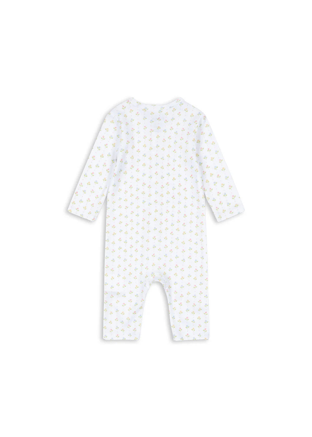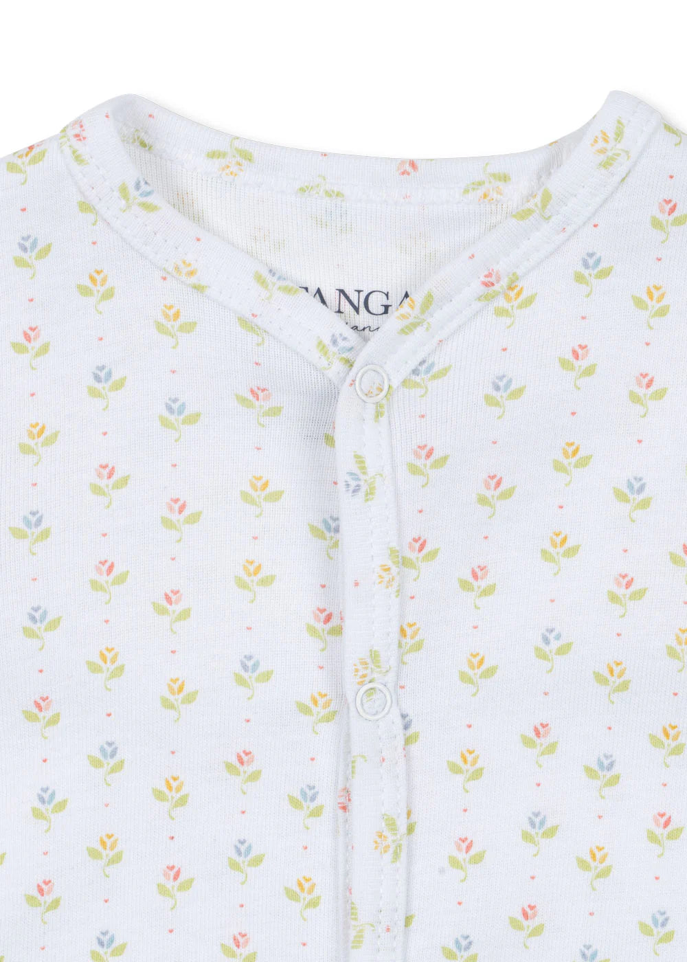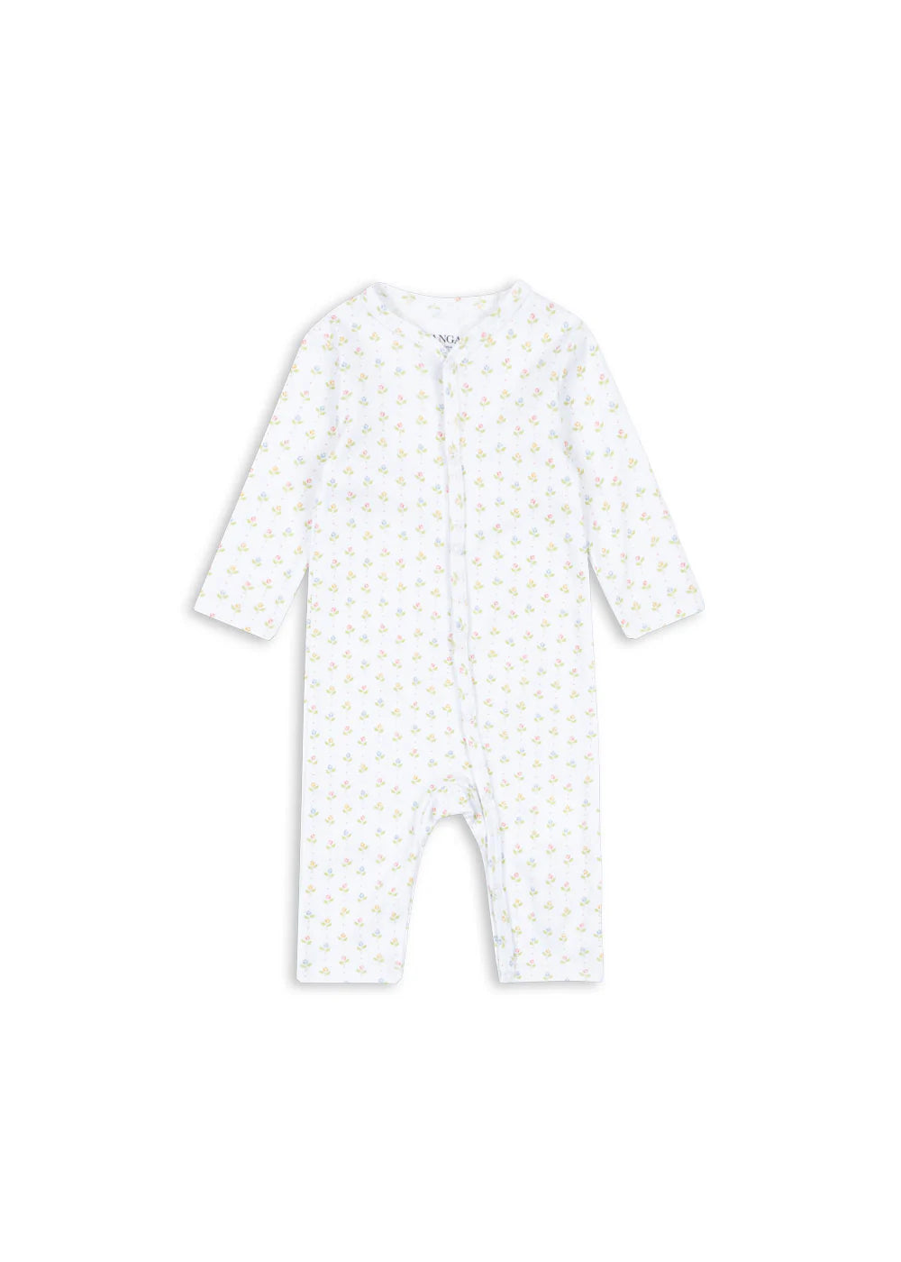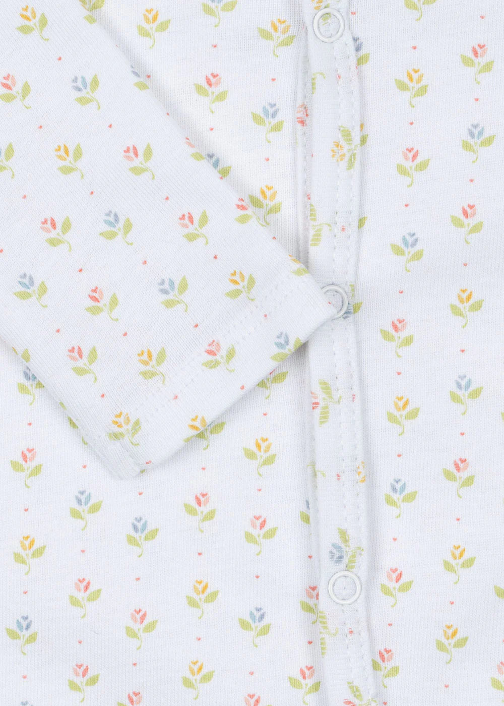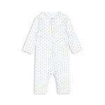 אוברול רך לתינוק מכותנה אורגנית. סגירת הלחץ בחזית ולאורך הרגל מקלה על החלפת תינוקך ושומרת על נוחותו לאורך כל היום.