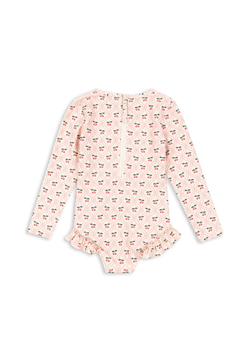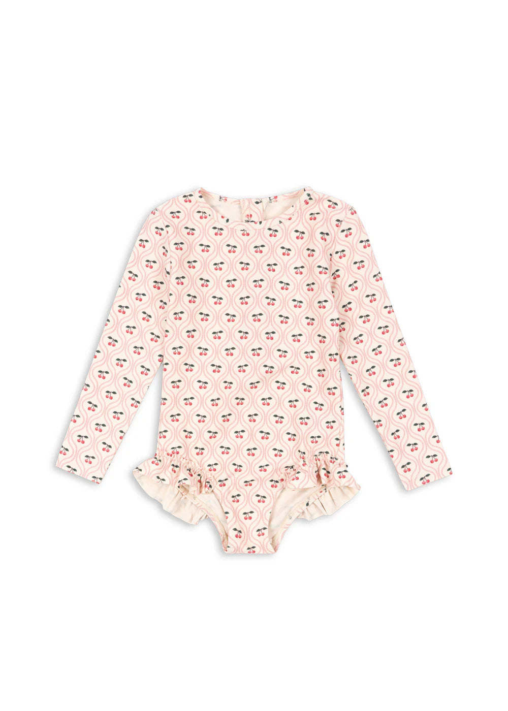 MERLE LS FRILL SWIMSUIT GRS - CHERRY PINK MOTIF
