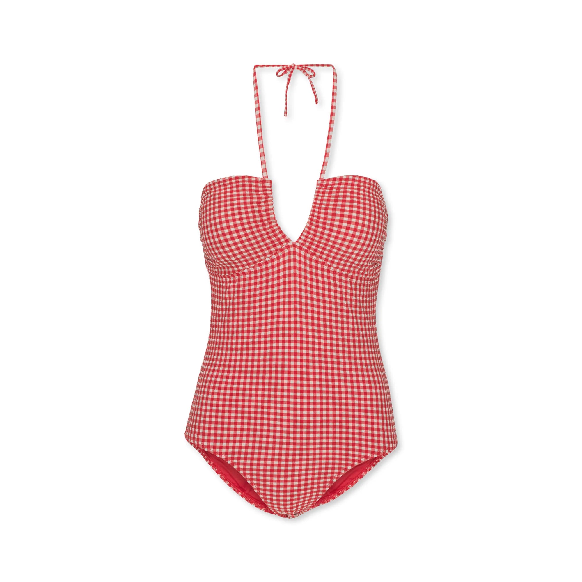 Maternity swimsuit made in 48 percent recycled polyester, 44 percent polyamide and 8 percent elastane. The swimsuit allows room for your growing baby bump and easy breastfeeding access too. Features a front, back and back neckline tie fastening that can be adjusted for the perfect fit. Designed with removable bust pads and a soft seersucker effect.