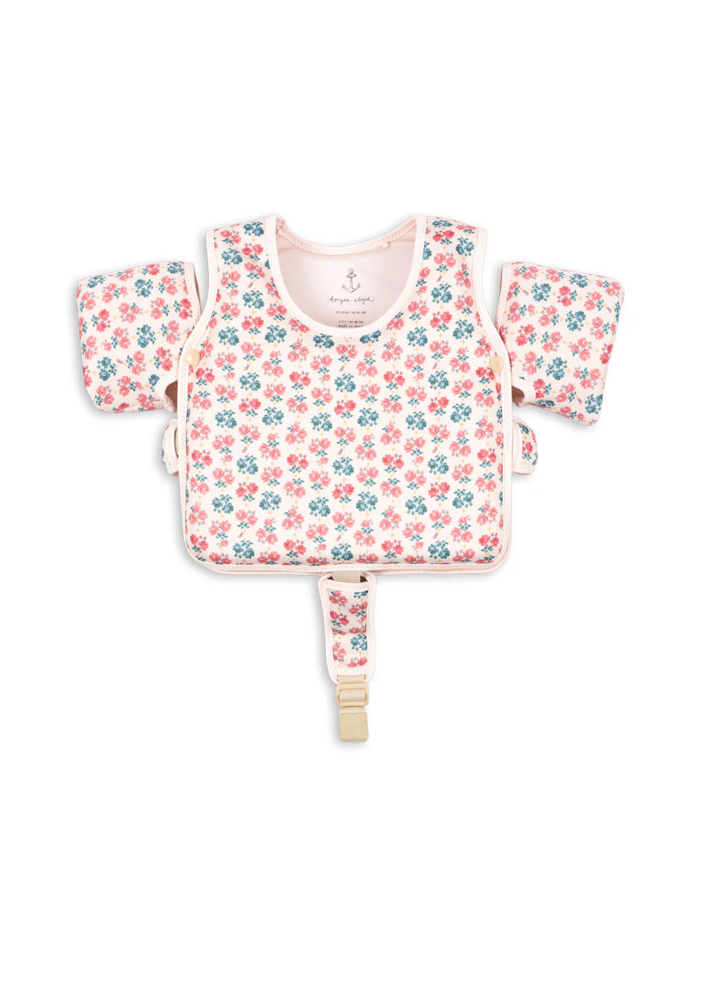 Our Hollis swim vest with water wings is designed with a large foam piece and two detachable wings. Features straps with buckle closure on the sides as well as a safety strap between the legs to ensure that your child cannot slip out of the vest. All straps must be adjusted according to your child's size before use, ensuring that the vest fits properly. The vest must only be used either with both wings attached or without any wings. The wings cannot be used on their own.