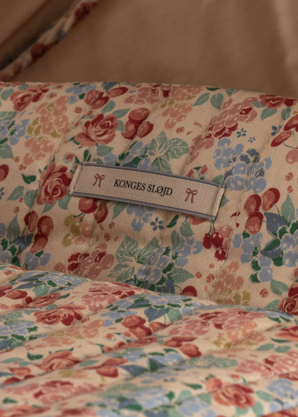 מעוצבת עם ארבעה גלגלים גדולים לתנועה קלה ויציבה, בד מרופד וקצוות מסולסלים עדינים.