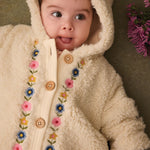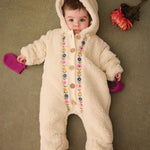 חממו את ההרפתקן הקטן שלכם באוברול פיילוט Naglaya בצבע קרם! אוברול זה בסגנון פרווה מלאכותית בסגנון שרפה כולל קפוצ'ון צמוד ורקמה מקסימה לאורך השרוולים וכפתורי הכפתורים, המוסיפים נופך גחמני. עם סגירת כפתורים קדמית להלבשה קלה ובטנה כפולה מכותנה לרכות נוספת, הוא מושלם לשמירה על חום ונוחות תינוקכם. מידות 9 חודשים ומטה כוללות רגליים מכוסות כדי לשמור על אצבעות הרגליים הקטנות חמות בכל מסע שובב